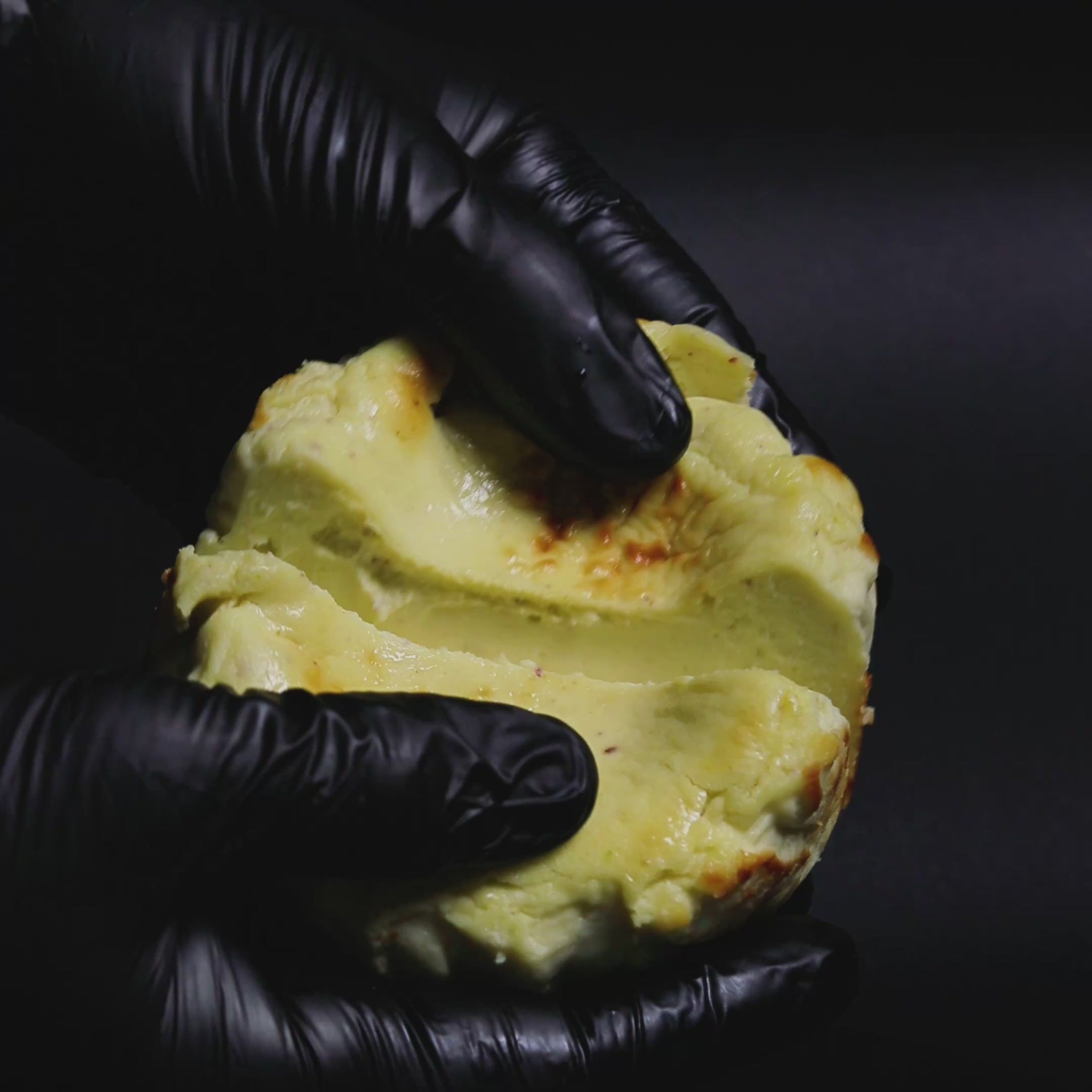 Bento Pistachio Basque Cheesecake delivers the same ultra-creamy, custardy center and signature caramelized top as our full-size Basque cheesecake, made with house-made pistachio paste for a deep, authentic pistachio flavor and a smooth, nutty finish.